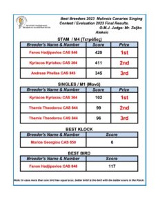 Παγκύπριος διαγωνισμός καναρινιών φωνής Μαλινουά – αποτελέσματα